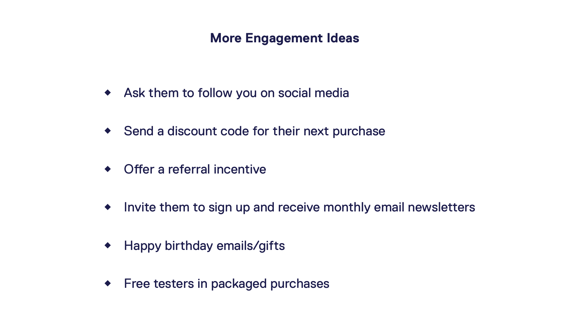 It can be as basic as an automated email or postcard sent to customers when their product is about to run out, or their product needs maintenance. This simple attention to detail can really improve the customer experience - customers will view you as dependable and trustworthy.