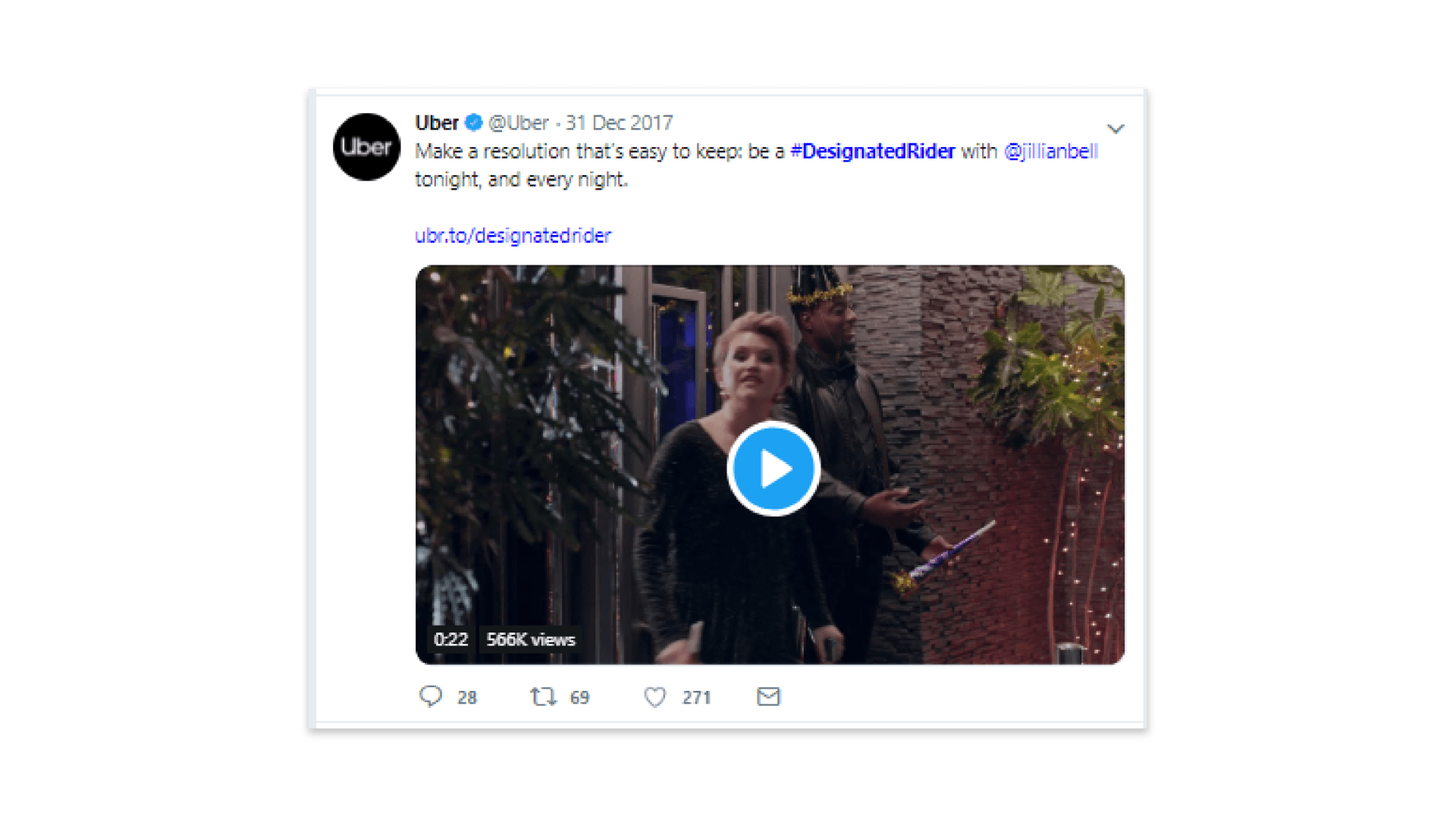 Example: Uber with their #DesignatedRider campaign. They teamed up with Mothers Against Drunk Driving (MADD), and urged drunken holiday partygoers not to drive.