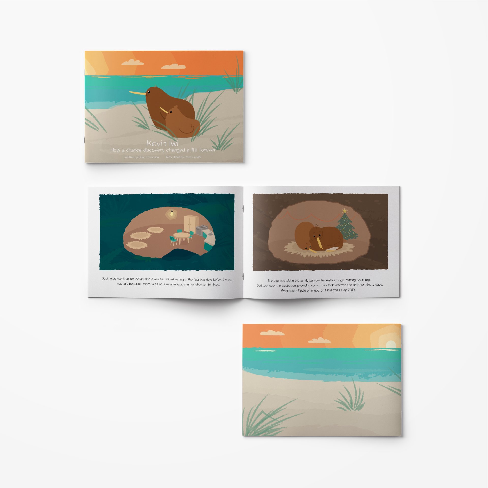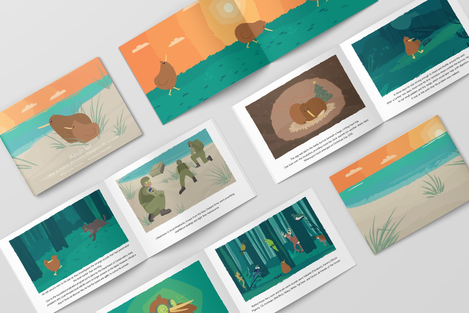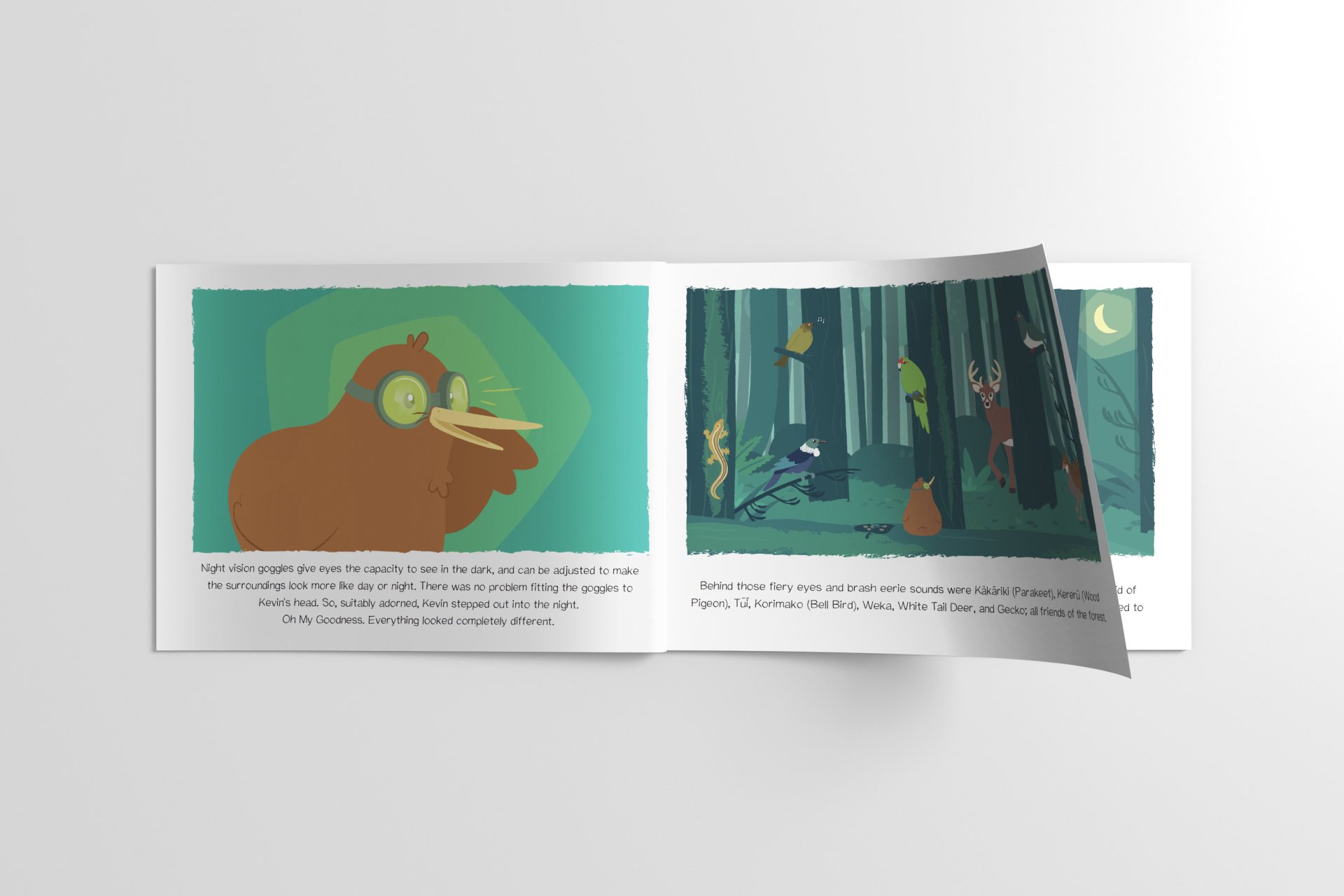 This children's book is a story of a very special kiwi, Kevin Iwi that follows his journey of overcoming his fear of the dark with the help of his father. This heartfelt educational book was written by Brian Thompson who is passionate about promoting the mantra "Children who read, will likely Succeed". With the help of Paula Hodder who provided the concept sketches, Attraction Studio brought this story to life.