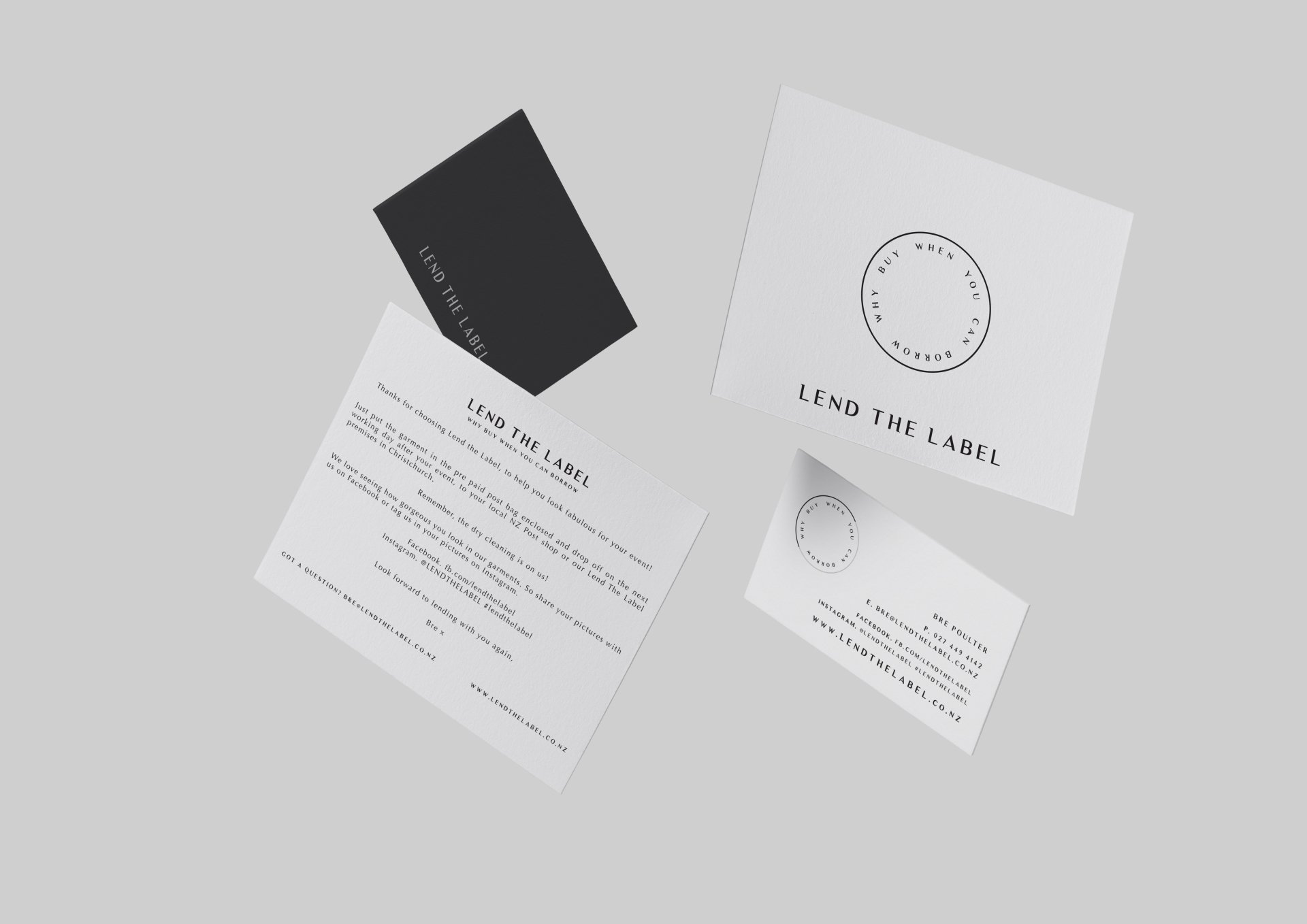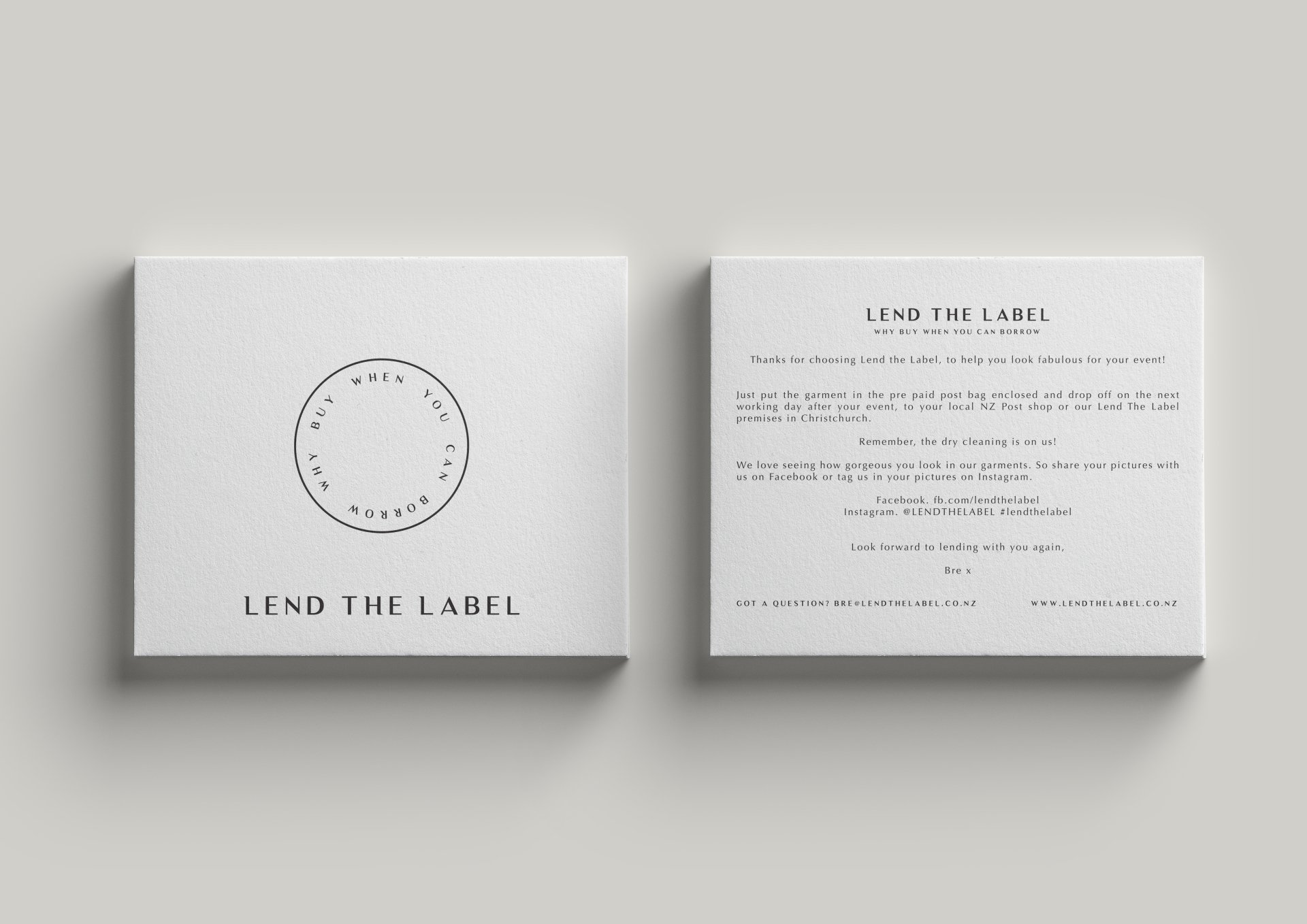 A custom word mark logo was created, supported by a secondary logo used to reinforce the solution Lend The Label offers “Why Buy When You Can Borrow?”