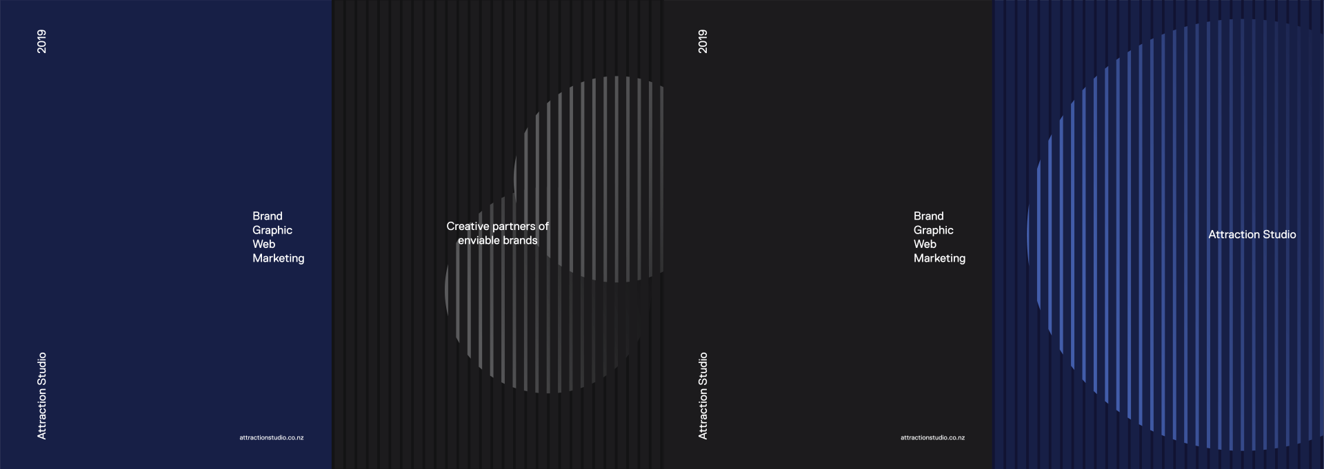 Graphic elements using stripes and shapes are used as representations of themes or messages relating to content. For example, two circles coming together represent relationships between Attraction and our clients, or a business and their clients, whereas vertical bars are used with reports, like a bar chart.