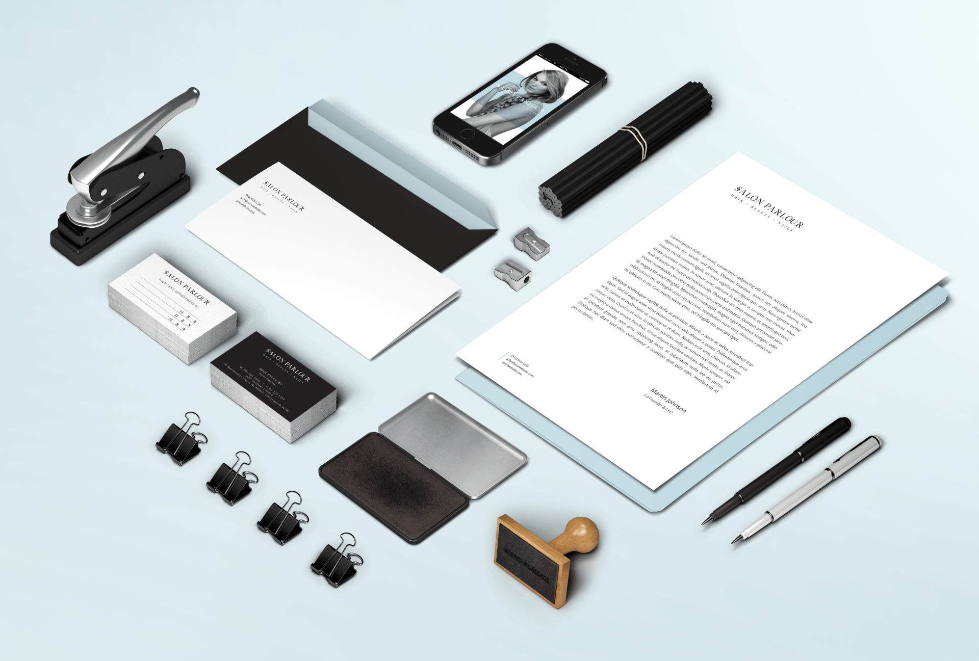 Salon Parlour is a sophisticated and contemporary space, semi minimalist, clean, with natural elements for warmth. The brand meets this style using a sharp wordmark logo and clean, structured graphics to position them as a high end salon.